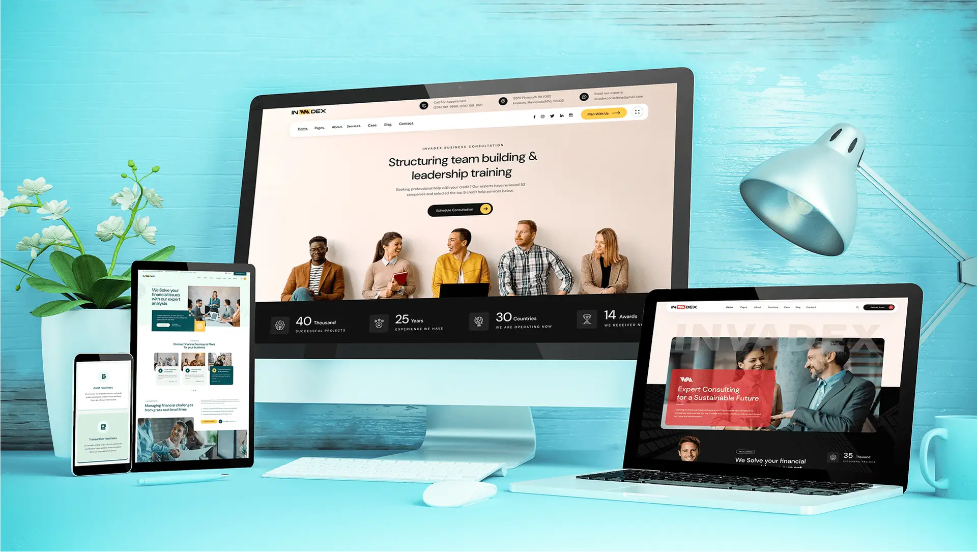 We are Invadex. It is designed as a modern & functional website for business & financial agencies.